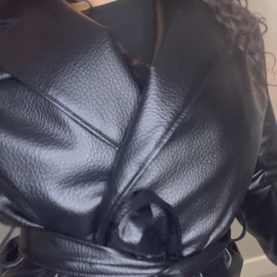 If you want to make a statement, this faux leather moto jacket is the one for you. With its belted waist, notch lapel, and structured shoulders, it delivers bold, effortless style in multiple solid colors.