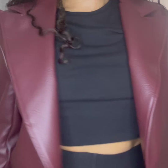 If you want to make a statement, this faux leather moto jacket is the one for you. With its belted waist, notch lapel, and structured shoulders, it delivers bold, effortless style in multiple solid colors.